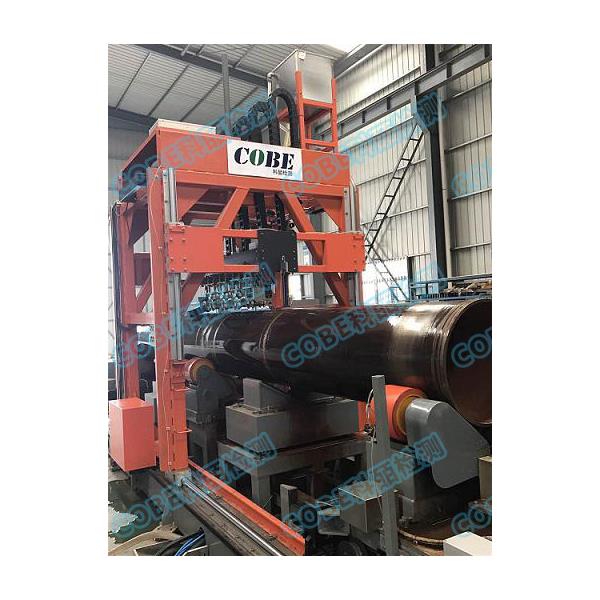 科皕研制的中小口径棒材、无缝管超声螺旋前进探伤系统,有效地解决了中小口径管棒材在传输过程中的超声探伤问题。COBE超声螺旋前进探伤系统采用局部精确定位技术,使被检的管材的局部与探头之间是保持确定位,这是保证准确可靠检测的重要手段;采用配套的数字化探伤仪,使得探伤仪能够显示伤缺陷信号的细节;采用自主研发的探伤专用信号处理软件,可显示出管材上的缺陷分布情况及各个缺陷的严重程度;设计有抗干扰技术,可抑制水泡干扰,有效地防止了误报现象;全自动上下料方式,对不合格产品进行自动分料,极大地提高生产效率。